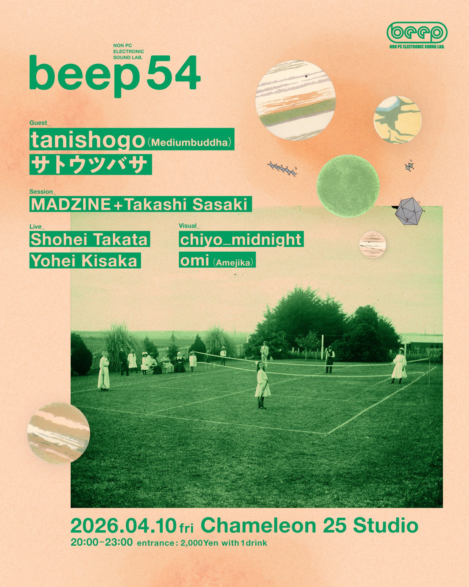 開催54回目を迎える札幌の電子楽器のライブイベントbeep。開催日時は2026年4月10日金曜、場所は地下鉄東西線 西18丁目駅より徒歩5分のChameleon 25 Studioにて20時オープン、20時30分スタート、23時終了です。