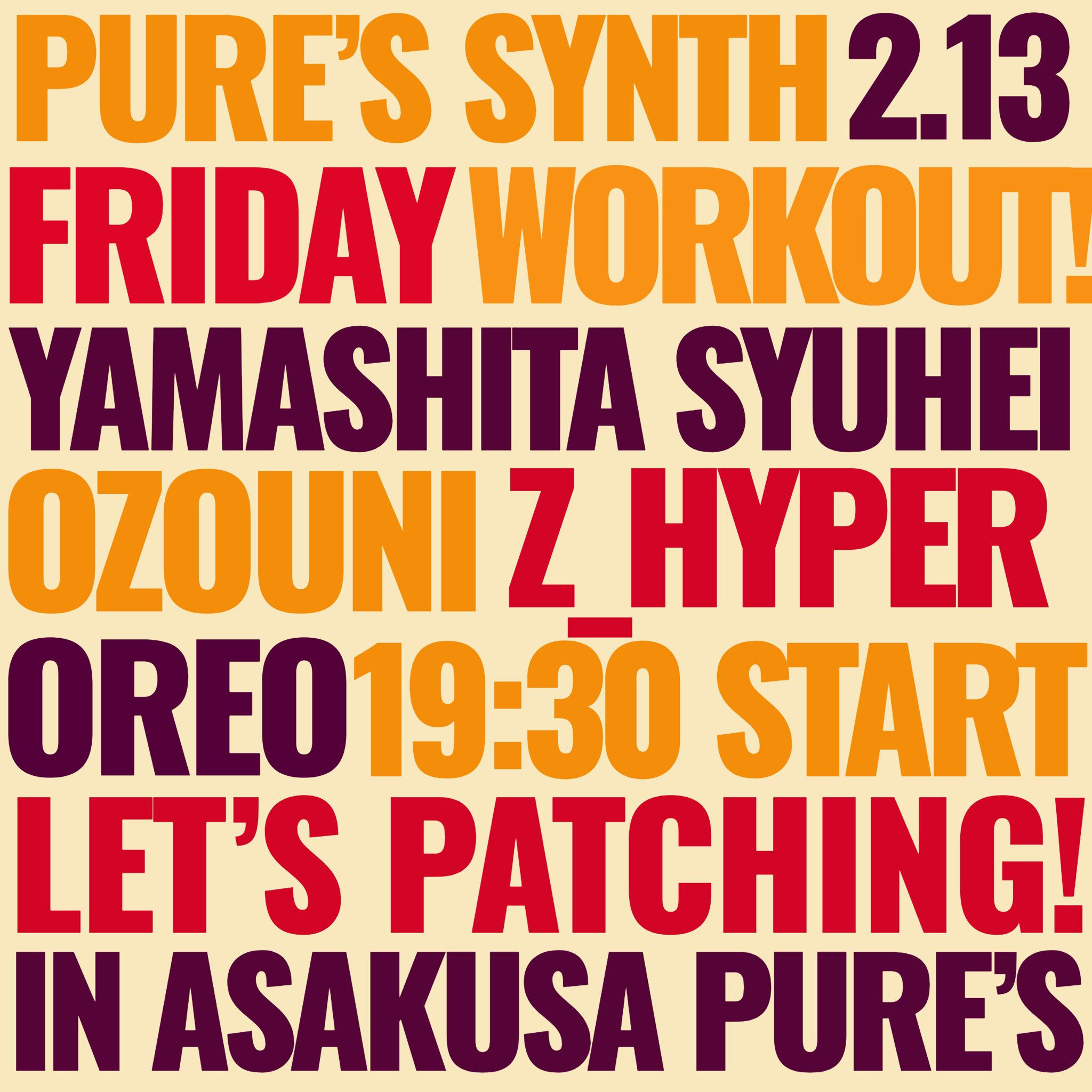 19:30 - 23:00 Pure’s Synth Workout 02/13 |19:30 Pure’s Synth Workout 2/13(金) Pure's Synth Workout 浅草Pure’s Sound Market OPEN […]